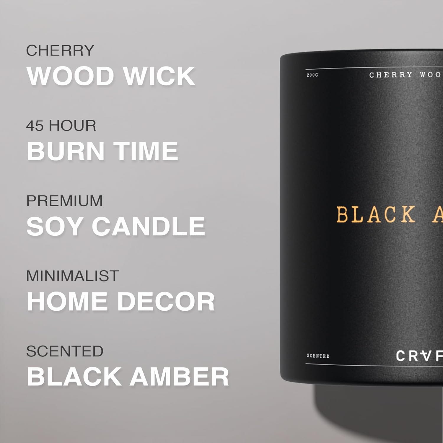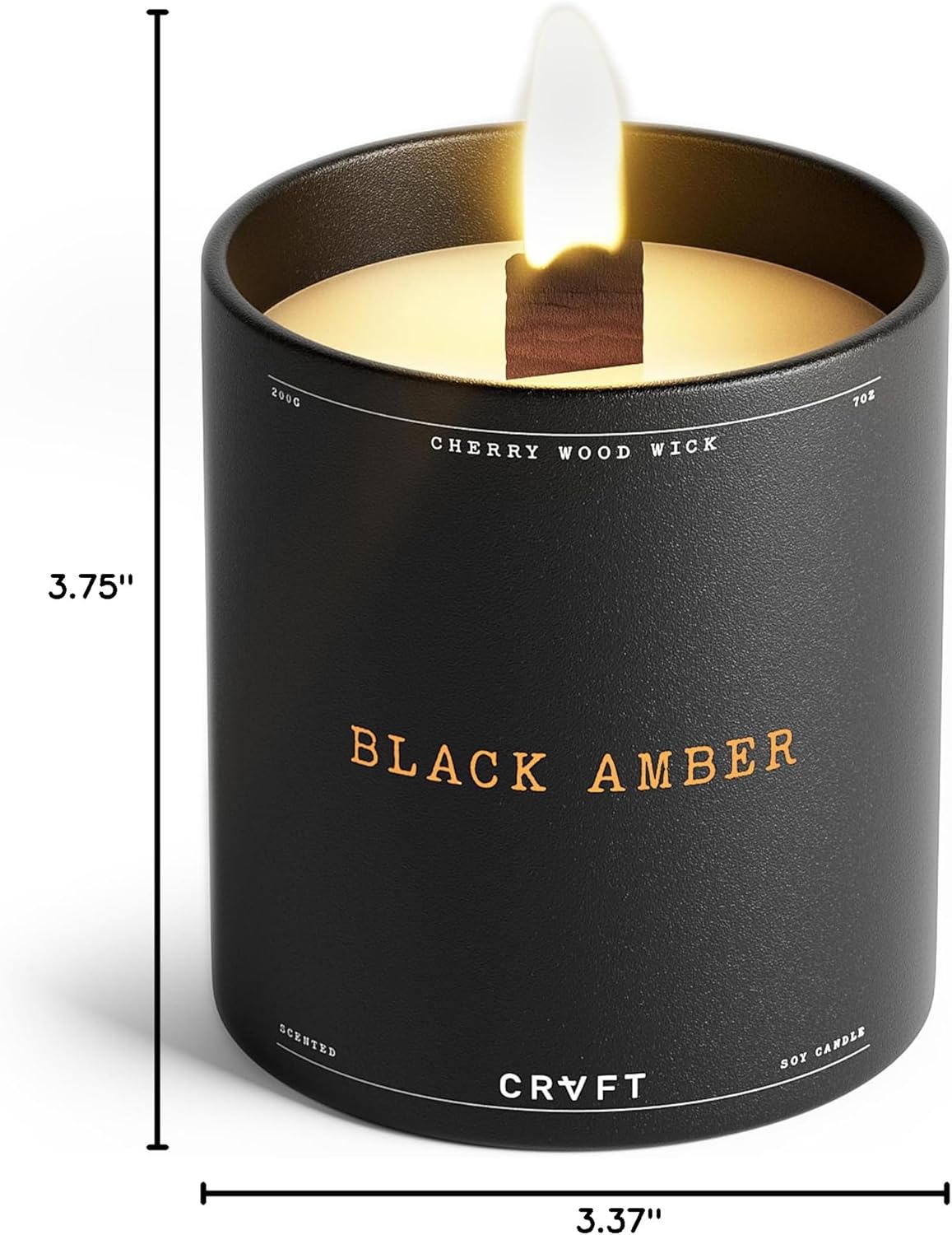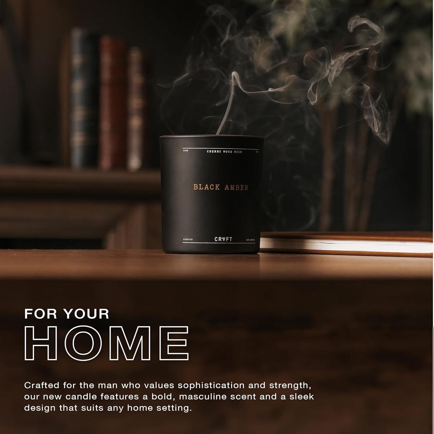 CRVFT Men’s Candle – Cherry Wood Candle – Soy Candle 45 Hour Burn Time – Room Decor and Housewarming Gift for Men – 7oz/200g (Black Amber)