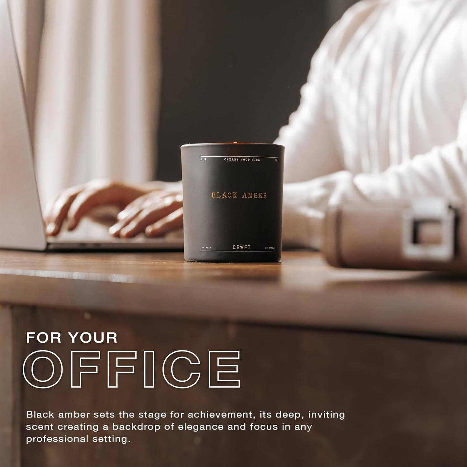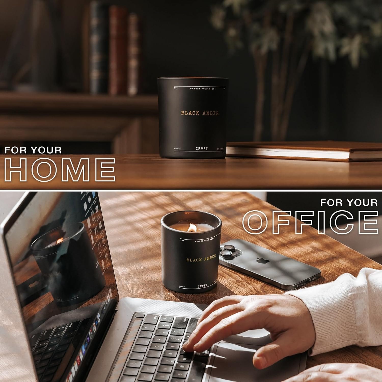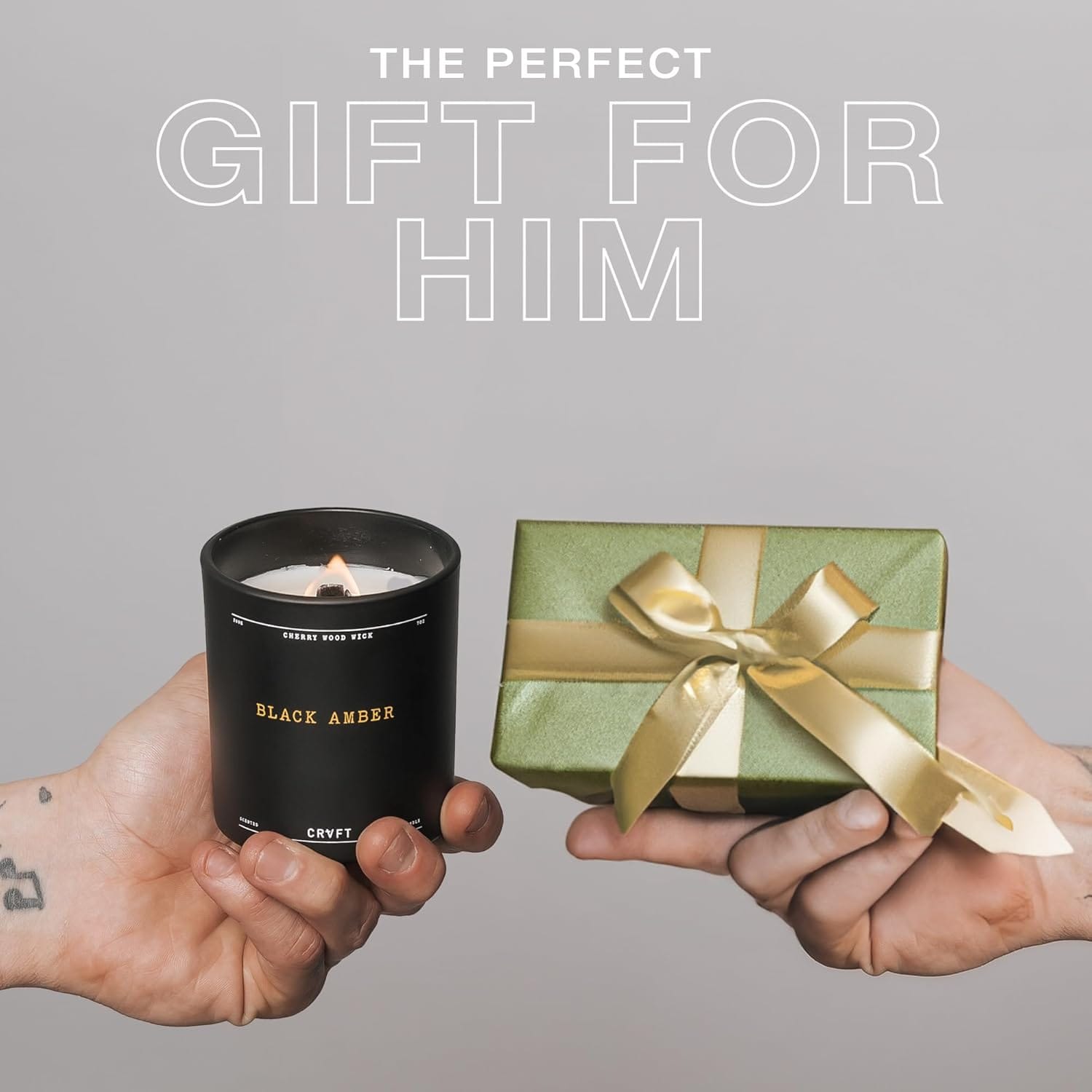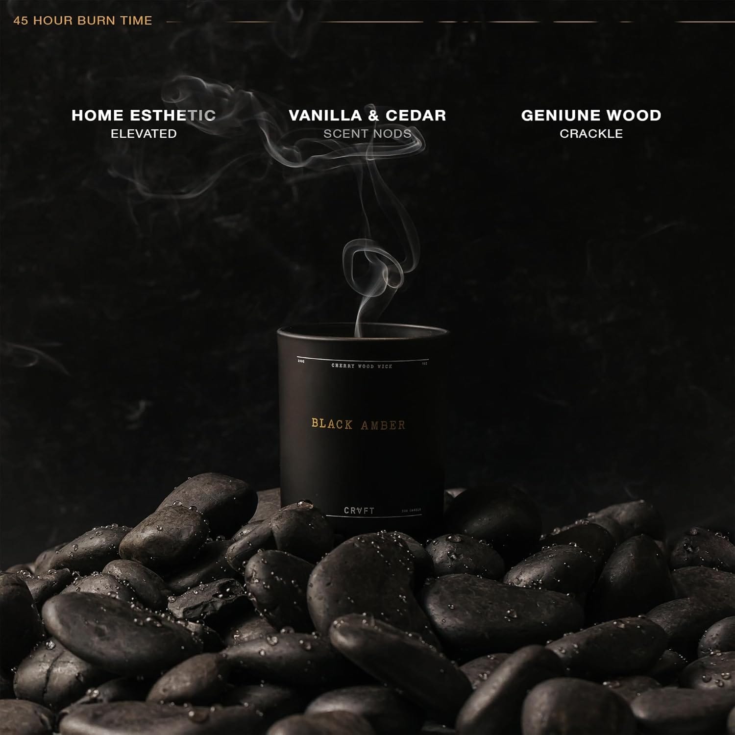 CRVFT Men’s Candle – Cherry Wood Candle – Soy Candle 45 Hour Burn Time – Room Decor and Housewarming Gift for Men – 7oz/200g (Black Amber)