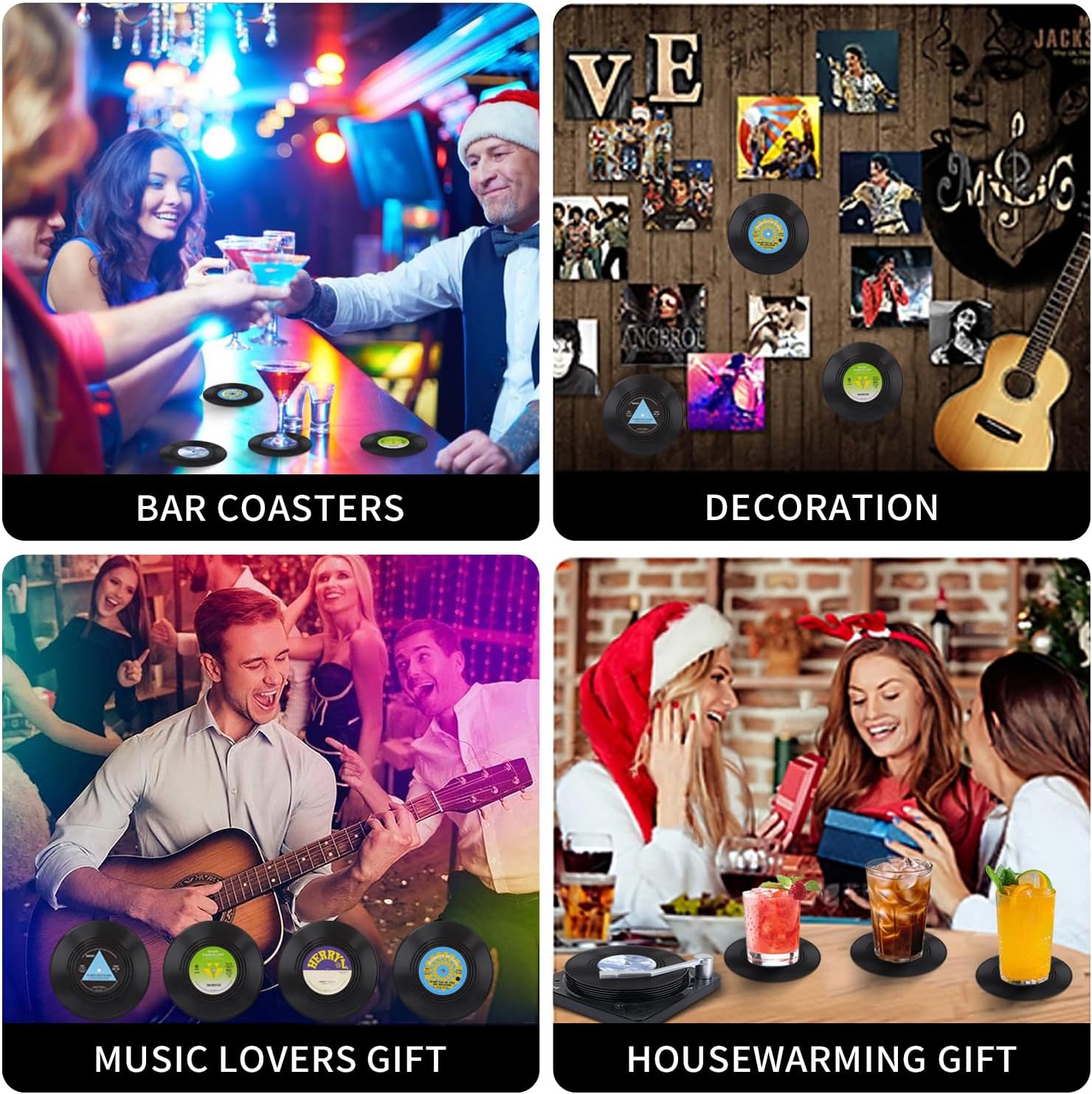 ★ MUSIC THEME — Adorn your coffee table with these stylish retro vinyl record coasters, making them perfect for music lovers, perfect decoration for 80s.