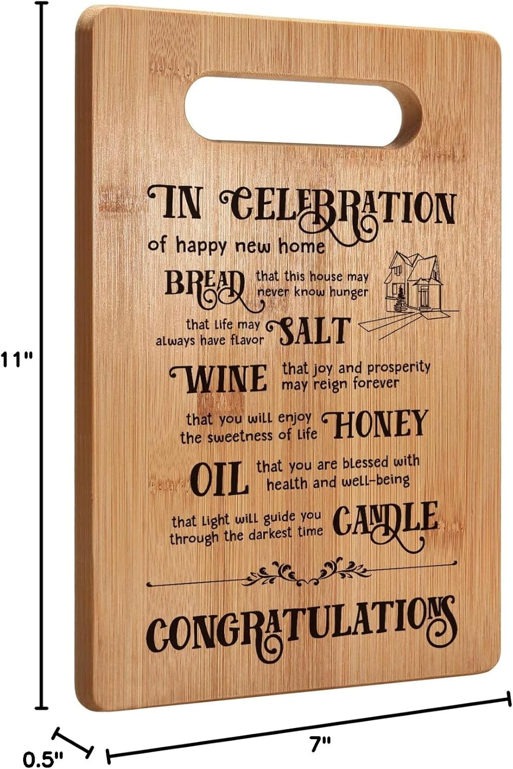 Customers find this cutting board to be a great housewarming gift with beautiful workmanship and a lovely appearance. They appreciate the engraving and consider it good value for money, with one customer noting how the message is displayed in the kitchen counter. The size receives mixed feedback, with some finding it good while others say it’s smaller than expected, and several mention issues with the wording.
