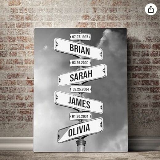 Personalized Family Names Date Of Birth Vintage Street Sign Poster Canvas, Street Sign Multi-Names Poster Canvas, Street Signs Customized, Family Wall Decor For Living Room, Wall Art Best Gift