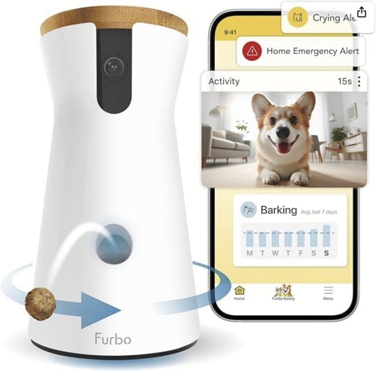 Furbo 360° Dog Camera + Nanny Bundle: Home Security & Dog Safety Alerts, Rotating Pet Treat Dispenser Camera with Speaker, Smart Home Indoor Cam w Phone App