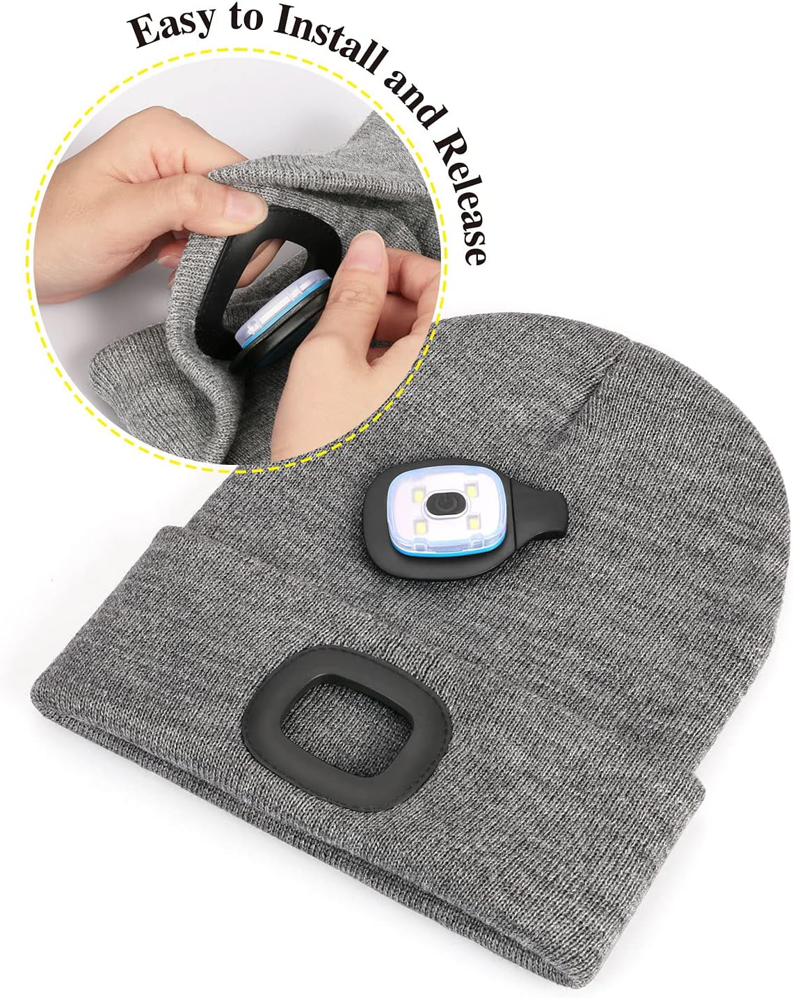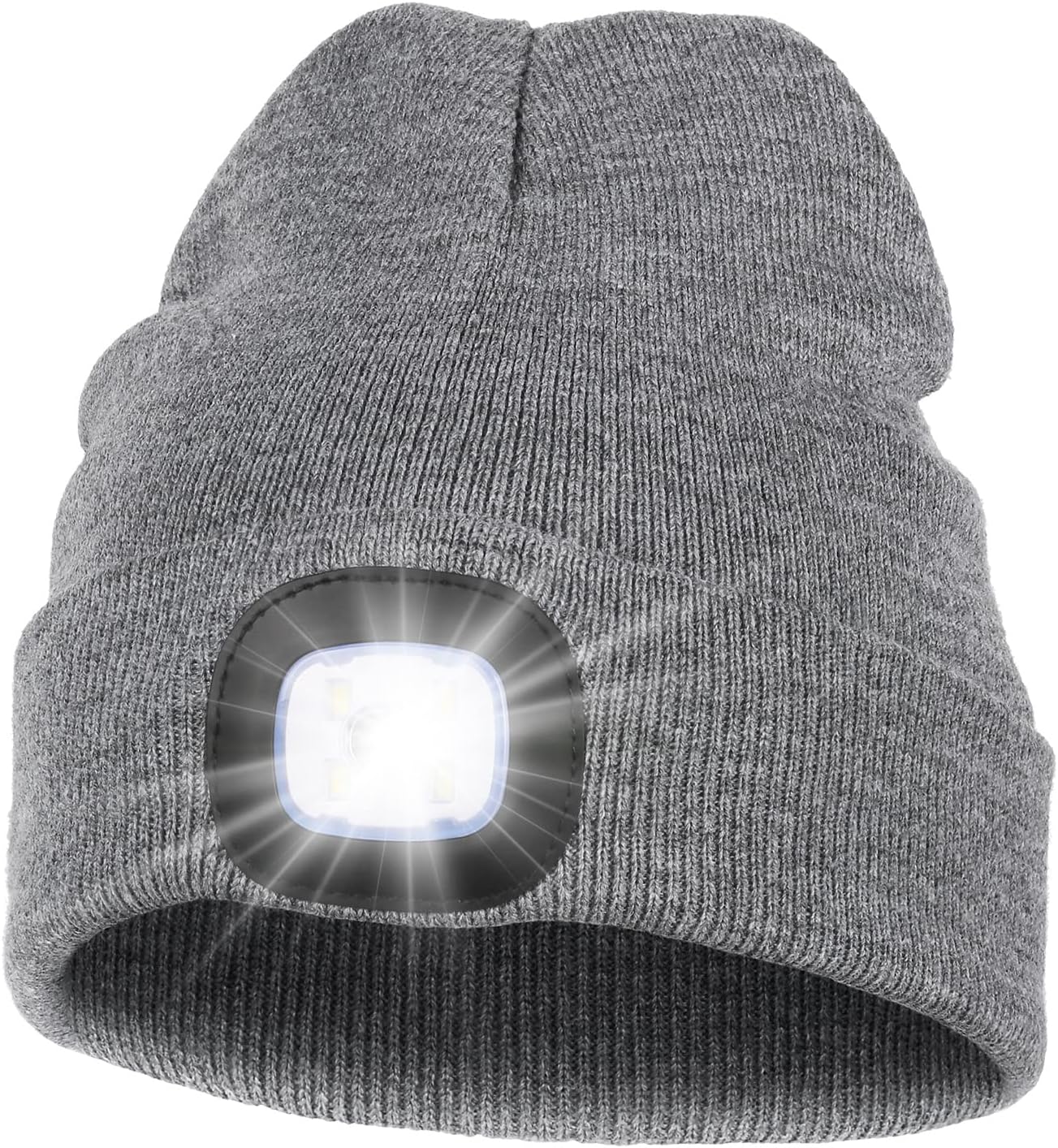 MELASA Unisex Hat with Light, USB Rechargeable Hands Free Headlamp LED Beanie, Winter Gifts for Men Dad Father Husband Him