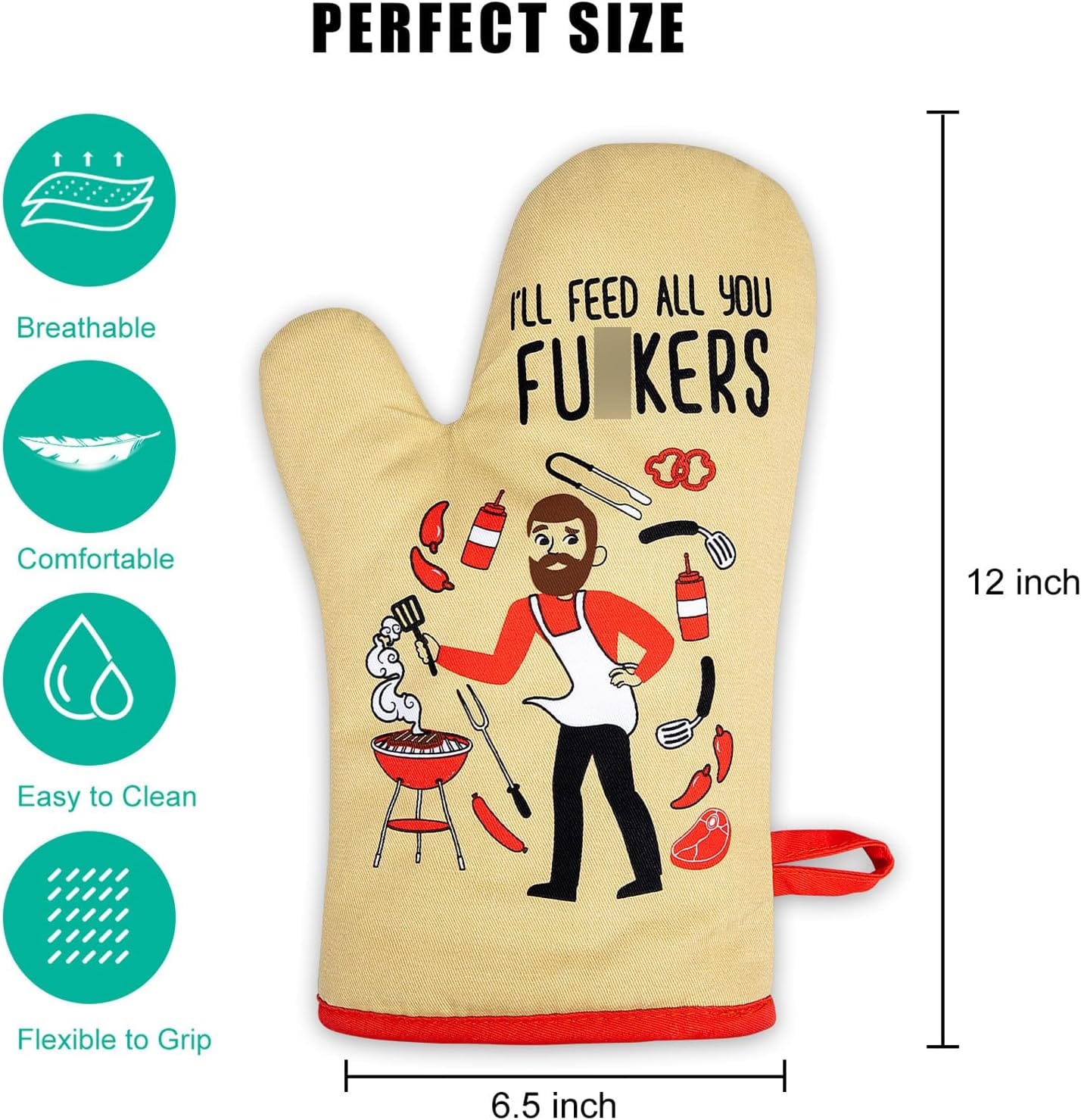 Funny oven mitts set of two, funny gifts for men; Our cool oven mitt set is a great cooking present for men when he’s up for feeding a crowd; Unique kitchen gifts for dad, husband, brother, grandpa, father in law, son, boyfriend, fiance, men, chef, male friends, BBQ lovers, restaurateur, cooking guys, grill dad, host or any home cook with a sense of humor