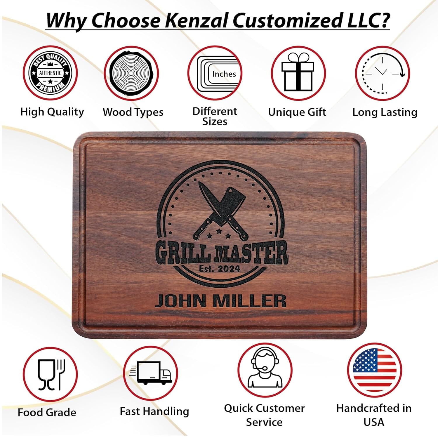 100% CUSTOMER SATISFACTION GUARANTEED! – Kenzal Customized LLC is a company specializing in creating truly memorable, unique, beautiful, and durable personalized gifts and home decor products for you and your loved ones. Our products are Handcrafted in the USA. We offer high-quality products like this customized cutting board with the best possible customer experience. Your happiness is our top priority. You can contact with our friendly team at any time with questions or comments.