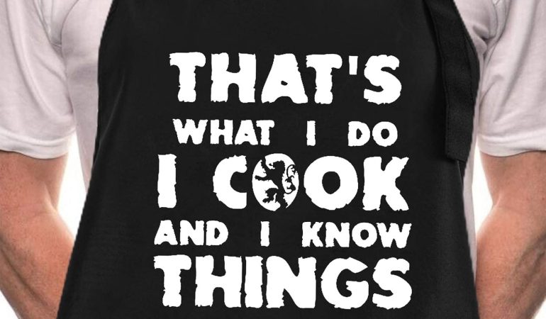 Rosoz Funny BBQ Black Chef Aprons for Men, I Cook and I Know Things Adjustable Kitchen Cooking Aprons with Pocket Waterproof Oil Proof Father’s Day/Birthday